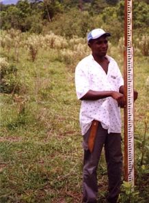 | FOTO 57 - Visão a partir da ombreira direita do futuro lago da BA-5. | FOTO 58 - Levantamento plani-altimétrico básico para o projeto das barragens. |