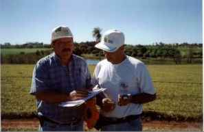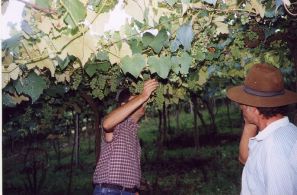 | FOTO 15 - Parreira de uva. | FOTO 16 - José Carlos Rossetti (CATI) e Ronaldo Cintra Lima (UNESP) em levantamento de campo. |