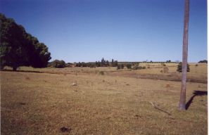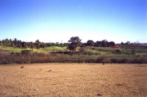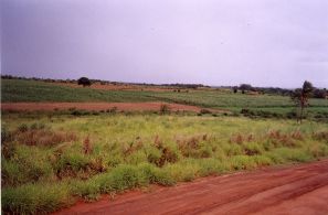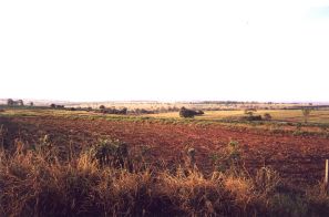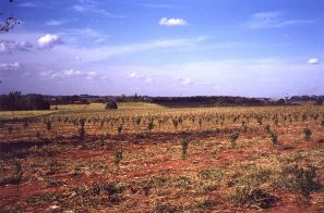 | FOTO 21 - Pomar de laranja recém plantado sentindo a falta de umidade no solo. | FOTO 22 - Pastagem sentindo a seca e a ausência característica na região de conservação do solo. |